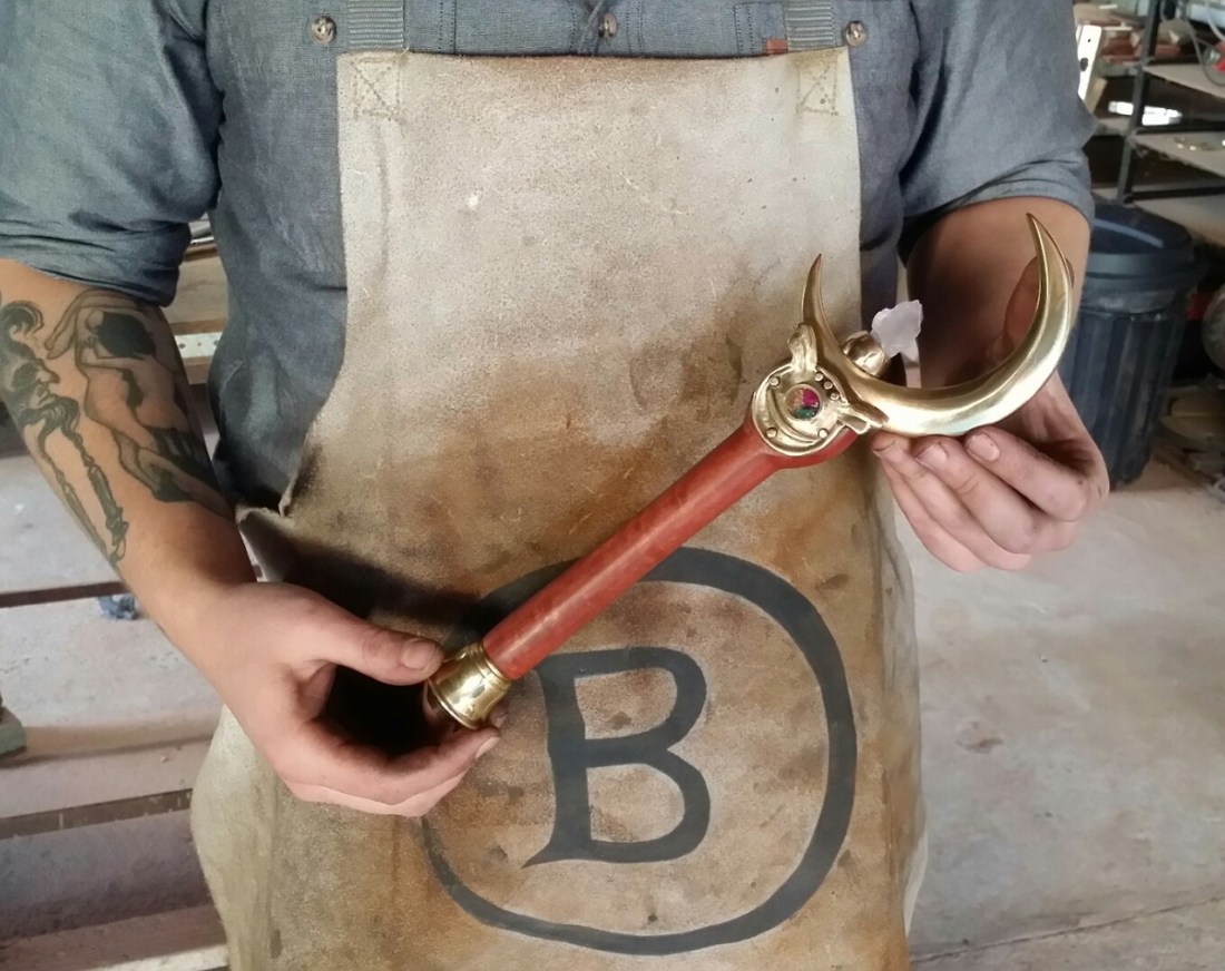 Built by myself using brass, redgum, amethyst, and other assorted gemstones.A dirtied craftsman that you would expect to create something like hand craved chairs making a sailor moon wand makes me so so so happy