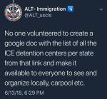 No one volunteered to create a google doc with the list of all the ICE detention centers per state from that link and make it available to everyone to see and organize locally, carpool etc.