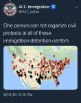 One person can not organize civil protests at all of these immigration detention centers. [Attached is a map of the US with immigration detention centers marked.]