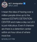 I mean, the idea of having over a million people drive up to the nearest ICETAPO DETENTION CENTER and make a day out of it is just ridiculous. Even if chances are there is a detention center within an hour drive of where most live